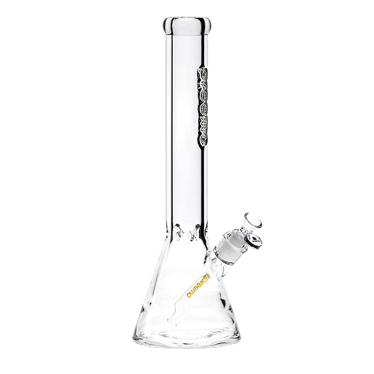 These are elegant Preemo clear beaker bongs with the logo embossed on the tube. The glass is 9mm thick and super sturdy. They come with a herb bowl, ice pinches and an open-ended down stem.