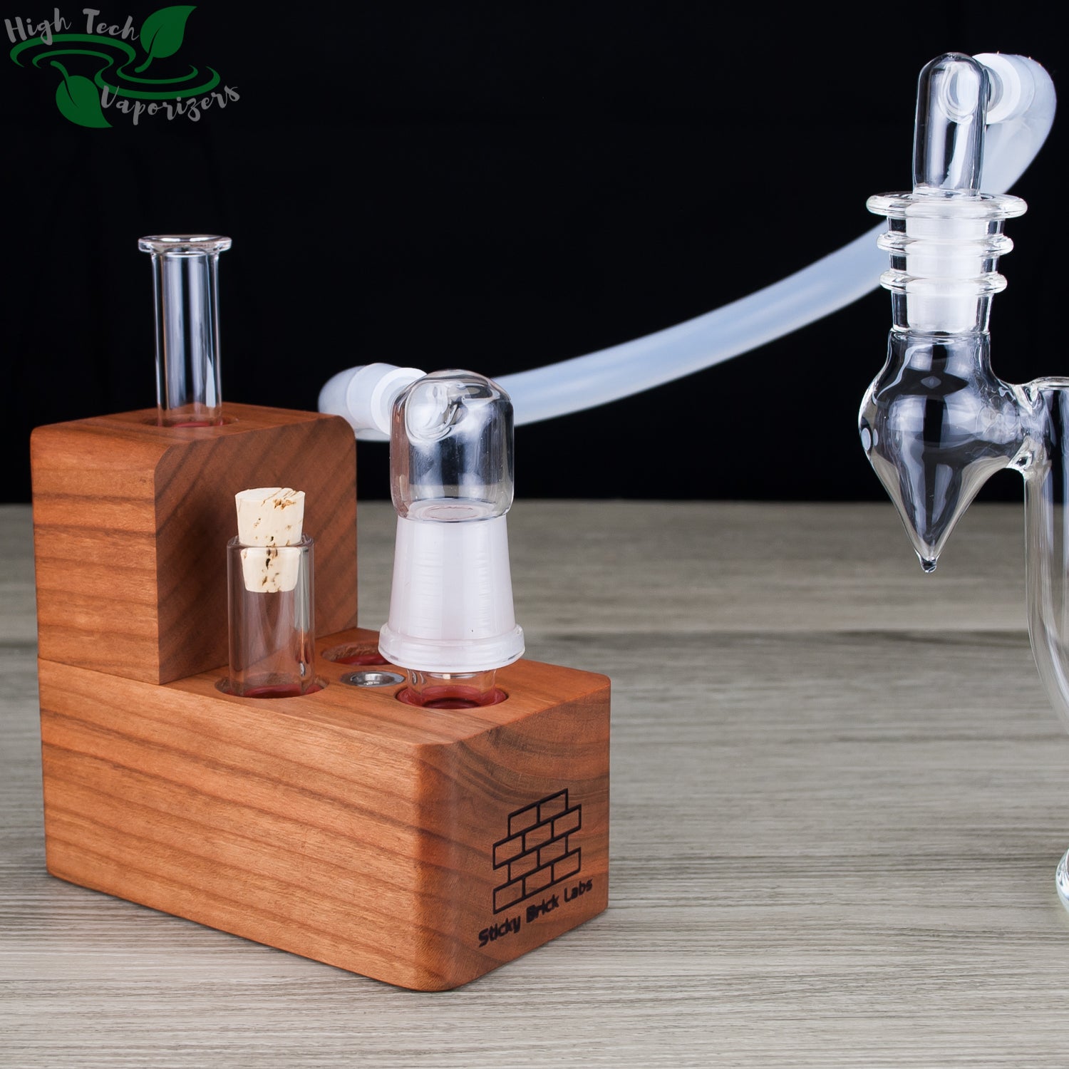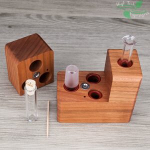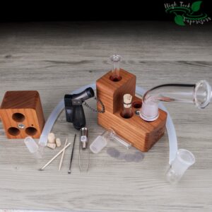 The HydroBrick Maxx by Sticky Brick Labs is the most advanced and versatile Sticky Brick to date. It is a semi portable desktop extraction device that has most of what you need self contained inside the hardwood body of the HydroBrick Maxx. Inside the max there is a wooden pick, flame intake and corked glass tube to store your herb.