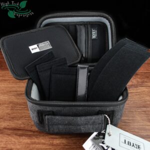 The Ryot Safe Case can handle a wide range of storage tasks and is up to the challenge of storing just about all portable vaporizers. This is due to the removable padded walls. This kit comes with 2 long walls and 3 short. Ontop of all the storage down below is the X-strap system located in the lid. Along with a mesh pocket and small zip bag. The small safe case will likely do the job for most but if this is not going to handle your kit then check out the large safe case.
