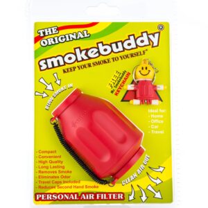 The Smokebuddy Original is a handy, and reliable, lifesaving air filter. Simply exhale your smoke through your easy-to-use Smokebuddy and odorless air comes out the other end. Smoke where you want, and when you want without anyone knowing the wiser. Keep second hand smoke away from friends, family, and neighbors with your Smokebuddy.