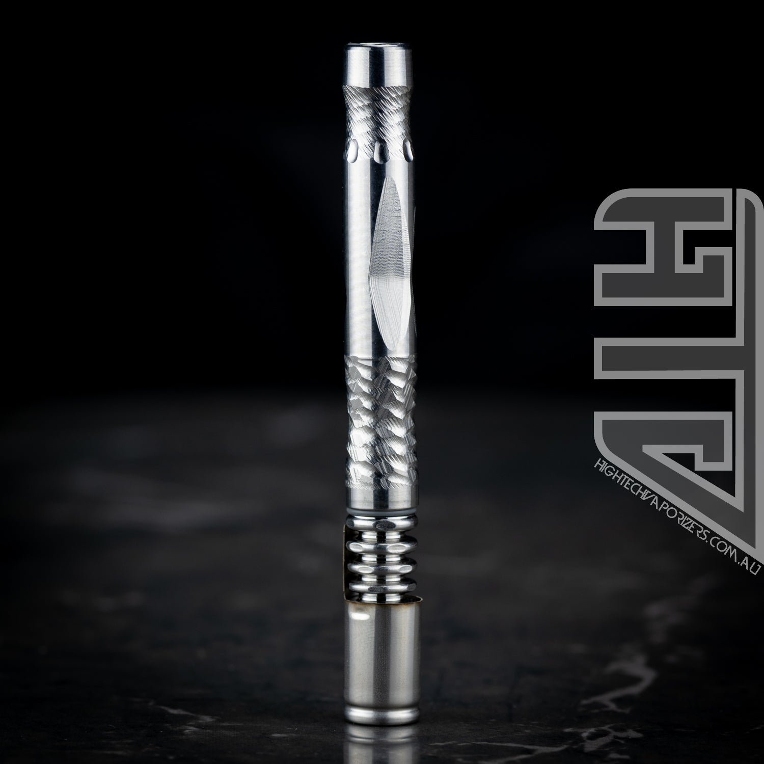 Let us begin with the tip. A Septa serrated fully faceted extraction chamber facilitates loading and sits atop an incremental fin profile. Contained inside the extraction chamber is our two position Adjust-a-Bowl feature that allows you to adjust the size of the dosing chamber to your needs.