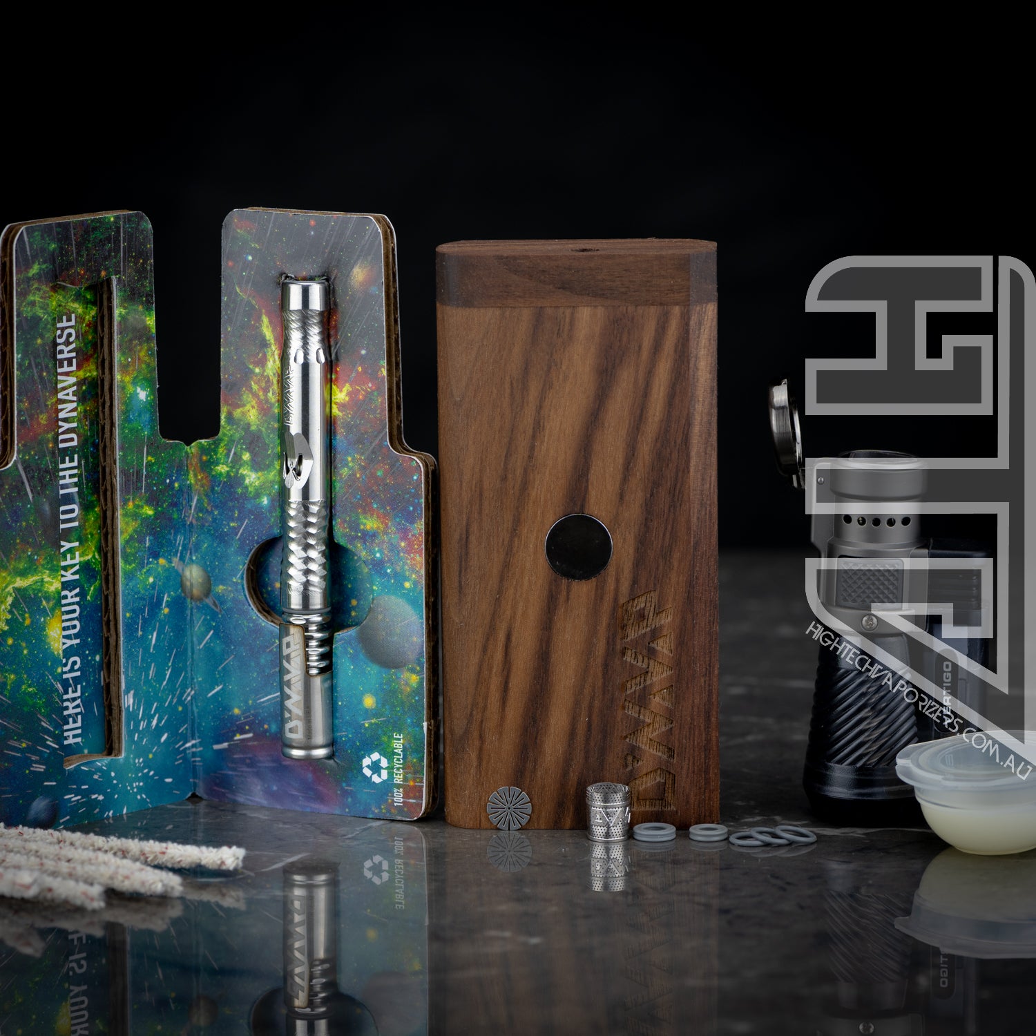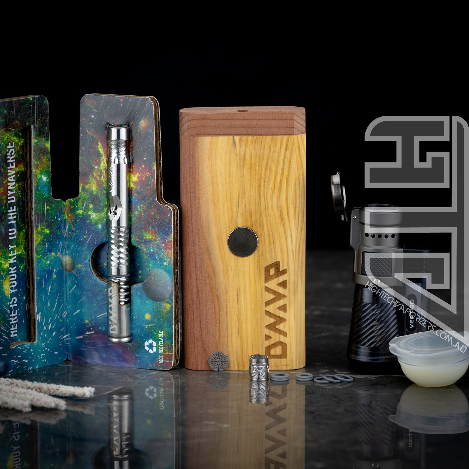 The M Starter Pack includes the 2021 M, a Dynastash, Vertigo triple flame torch, Spare Stainless Steel CCD, Spare High Temp O-rings, Spare Condenser O-rings, Dynawax and some Pipe Cleaners for maintenance.